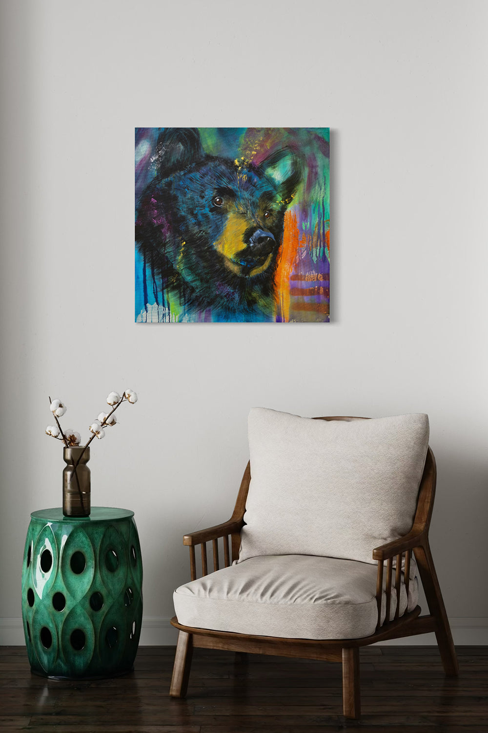 What do bears dream about? I have no idea but I'd like to think they dream about vibrant spring flowers, colorful summer berries, and clean mountain creeks. This black bear oil painting is my interpretation of those dreams.